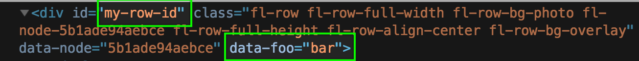 You can easily add custom attributes when you need them for a particular row, column or module. The code examples below use filters to add the attributes to a row, column or module that has a custom ID.