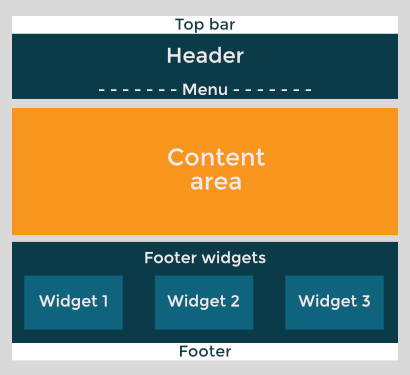 - Layout and styling of the header (top bar, header, nav bar), footer (widgets and footer bar), and sidebar.