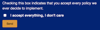 • There's an optional Terms and Conditions checkbox. You can add custom text above the checkbox and customize the checkbox label, as in the following screenshot. If you enable the checkbox, users must select the checkbox to submit the form successfully. If they don't, they receive the message "You must accept the Terms and Conditions." One use for this checkbox is to meet GDPR requirements if you feel users must explicitly accept terms and conditions.