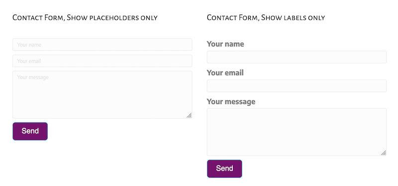 In contrast, here's the output when Show labels/placeholders is set to Show labels only: