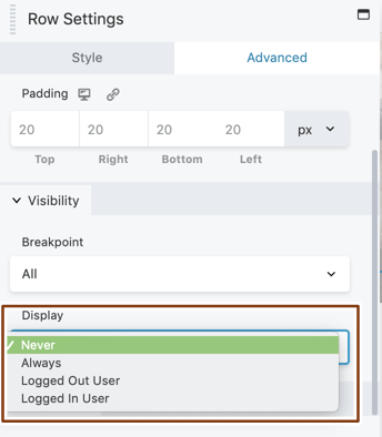 With Beaver Themer installed, in either a standard Beaver Builder layout or a Themer layout, the Display field has an additional Conditional Logic choice, as you can see in this screenshot.