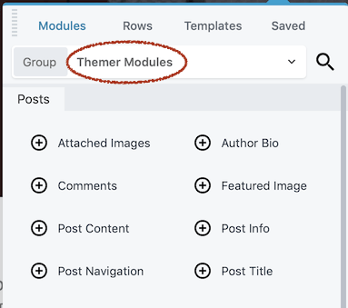 - The Themer layout group in the Content panel has additional sections of modules specifically for these plugins, if they're installed:
